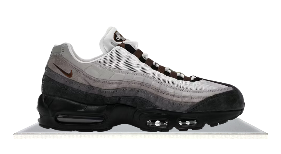 The Nike SB Air Max 95 Cacao Wow reimagines the iconic runner with skate-ready detailing and earthy tones. Layered leather and suede panels fade from light grey to deep brown, while subtle SB branding adds a fresh edge. A fusion of Air Max heritage and modern skate culture.
