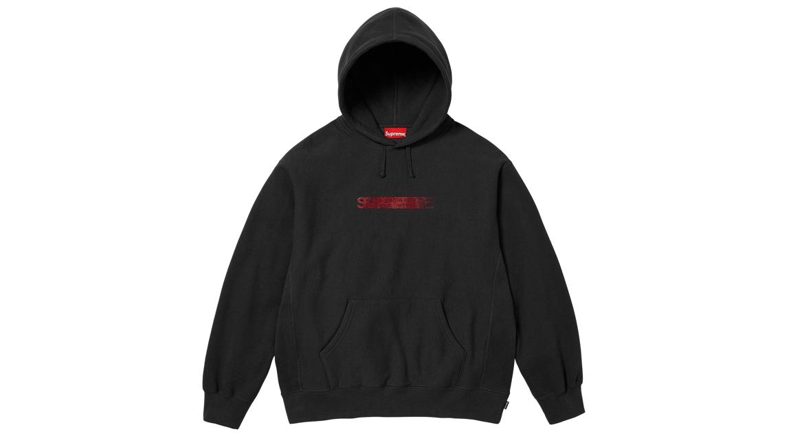 The Supreme Swarovski Motion Logo Hoodie features Swarovski crystals on the iconic motion logo, adding a luxurious touch. Please note, the crystals are delicate and may loosen over time. We recommend careful handling and gentle washing to preserve the detailing.