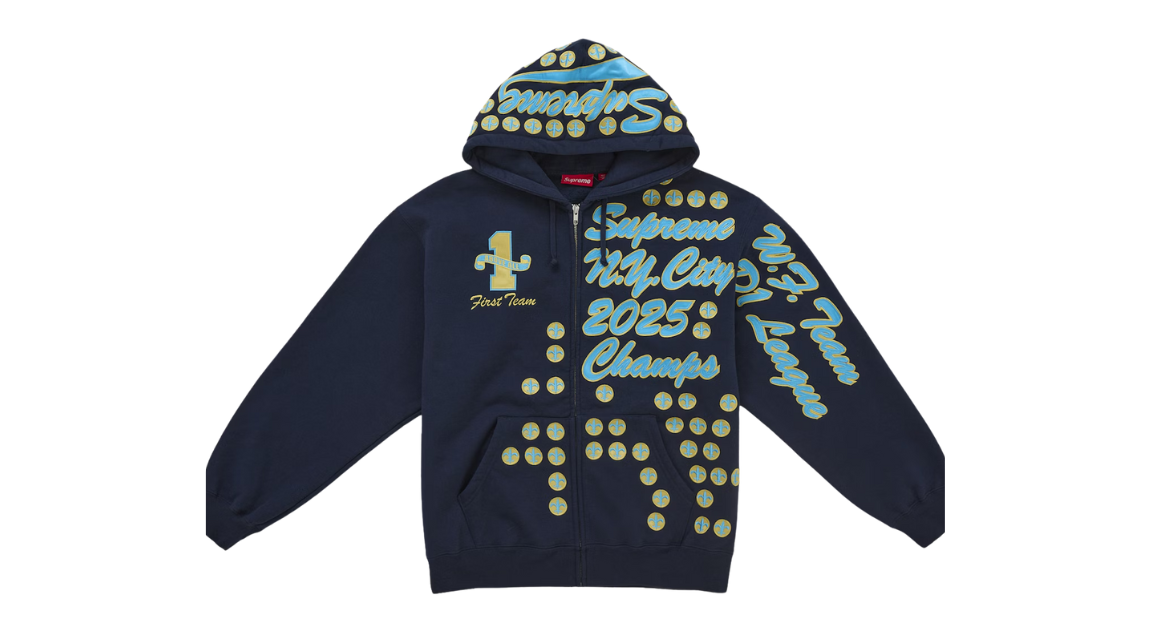 Supreme League Champs Zip Up Hooded Sweatshirt Navy (P)