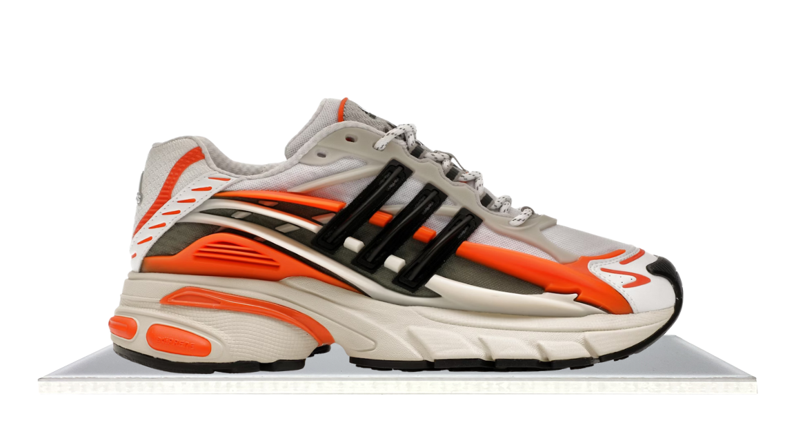 The Adidas Adistar Jellyfish Pharrell Williams Focus Olive Orange reimagines the classic Adistar Cushion 3 with futuristic, ocean-inspired design. Featuring a white mesh base with flowing TPU overlays in white and vivid orange, it’s accented by glossy black Three-Stripes and a unique Jellyfish logo. Finished with a chunky foam midsole and Adiprene cushioning.