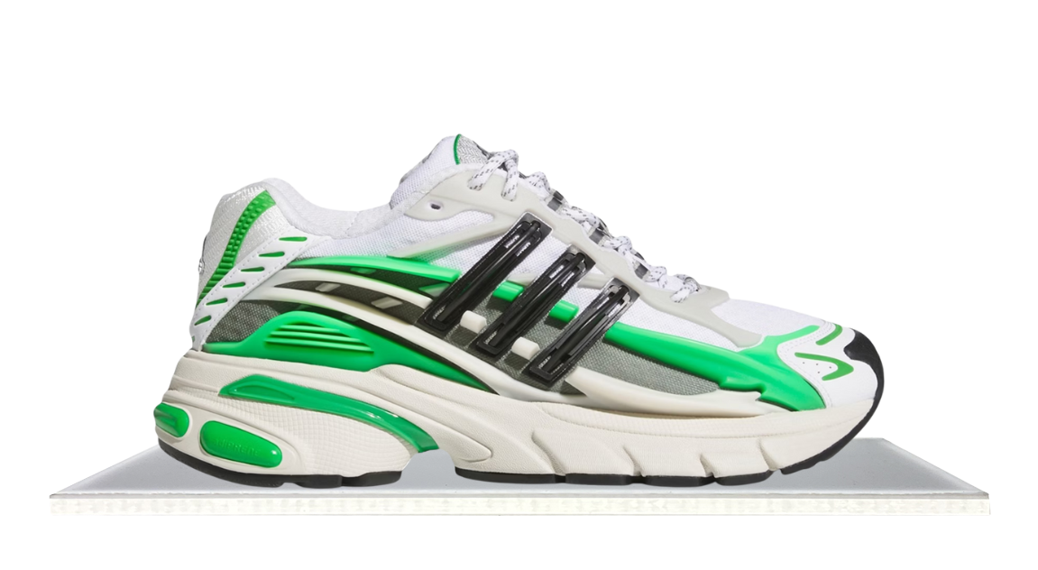 The Adidas Adistar Jellyfish Pharrell Williams Real Green fuses retro running heritage with bold, futuristic design. Built with breathable mesh wrapped in a sculptural exoskeleton inspired by jellyfish movement, it’s finished with rugged rope laces, reflective accents, and Pharrell’s signature detailing.