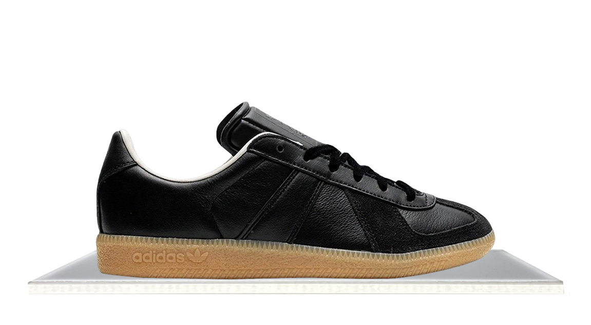 The adidas BW Army Lux “Black Gum” revives the iconic military trainer in a sleek all-black finish. Crafted with cracked leather and suede, this low-top silhouette balances premium materials with minimalist style. A tan leather lining adds contrast and comfort, while the gum rubber sole and Trefoil tongue branding complete the vintage-inspired look.
