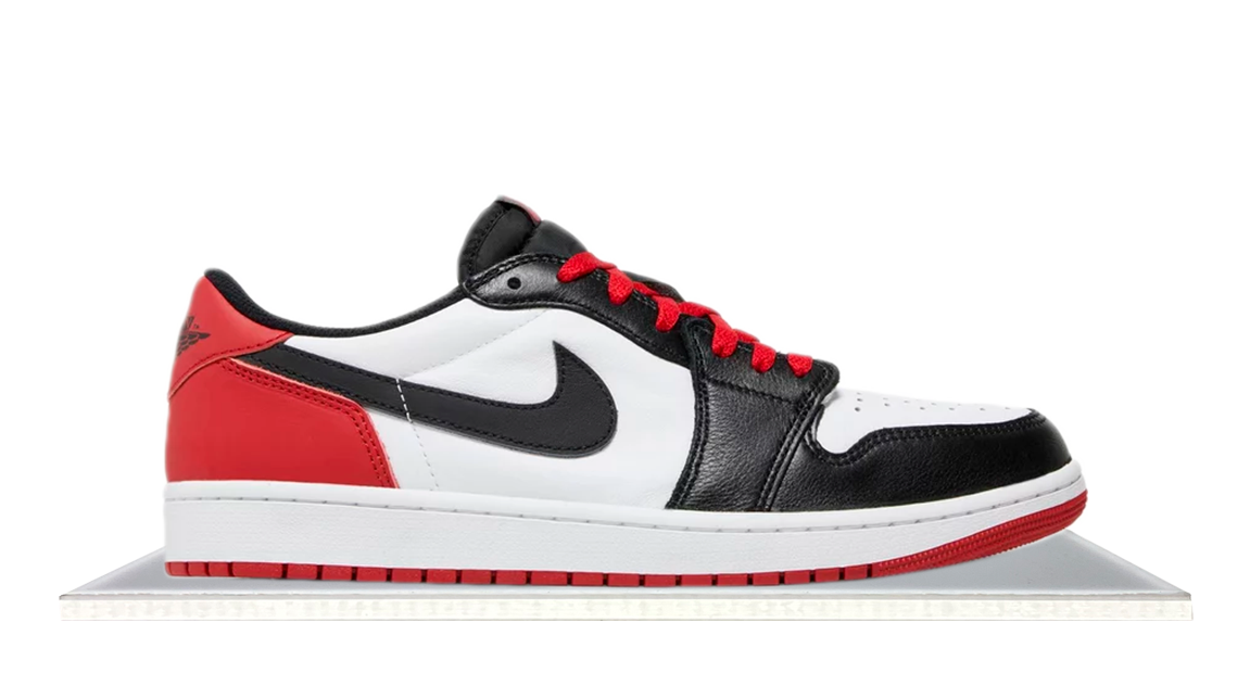 A timeless and classic colorway reinterpreted in the Air Jordan 1 Low model. It features red tones on outsole, heel and laces, while black tones cover the mudguard, tongue and inner lining. White tones is seen on the mid-panel and toe box.