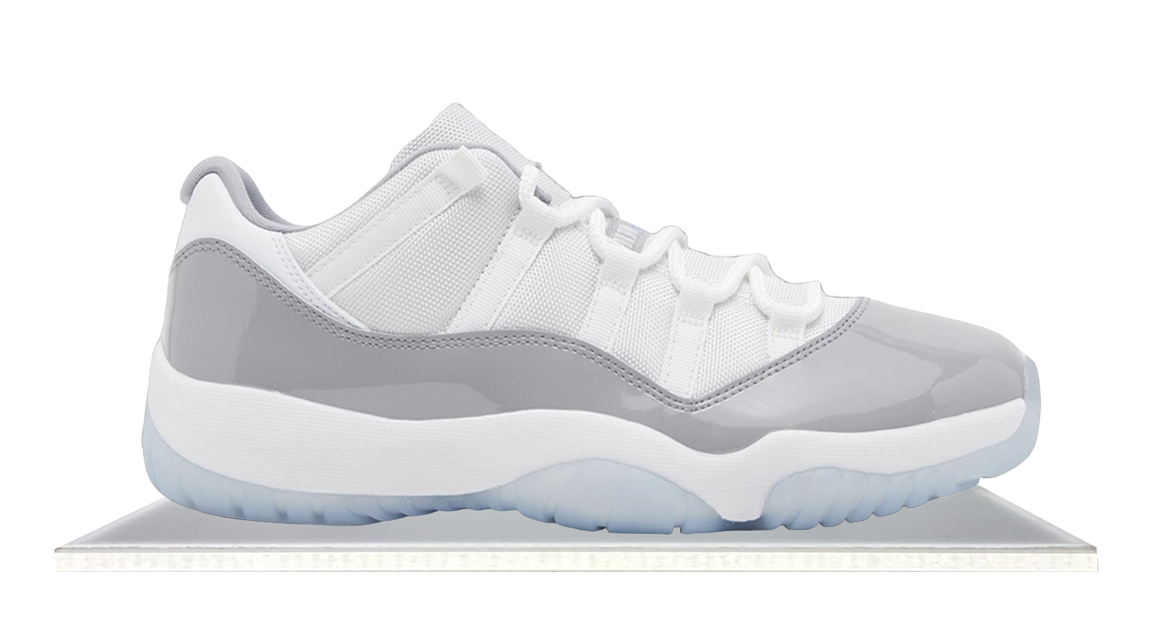 The Air Jordan 11 Low Cement Grey draws inspiration from some very well known Air Jordans; The Air Jordan 11 Retro Cool Grey and the Air Jordan 3 Retro White Cement. It features a white mesh upper with a grey patent leather mudguard.