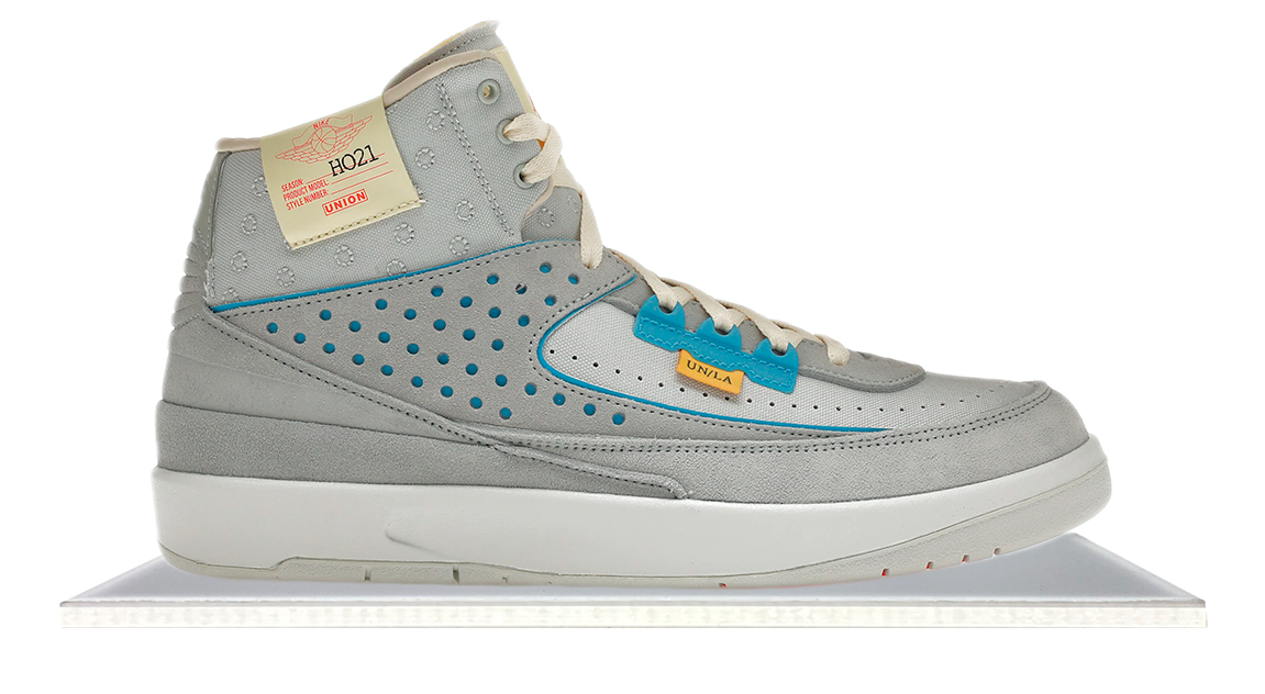 Union is back with another take on a Jordan. This time being the Air Jordan 2. Two colorways were made, this one being the “Grey Fog”. The pair features a grey upper with blue coloring highlighting details and layers on the sneaker. A lot of other unique details are also featured throughout the sneaker making it truly special.