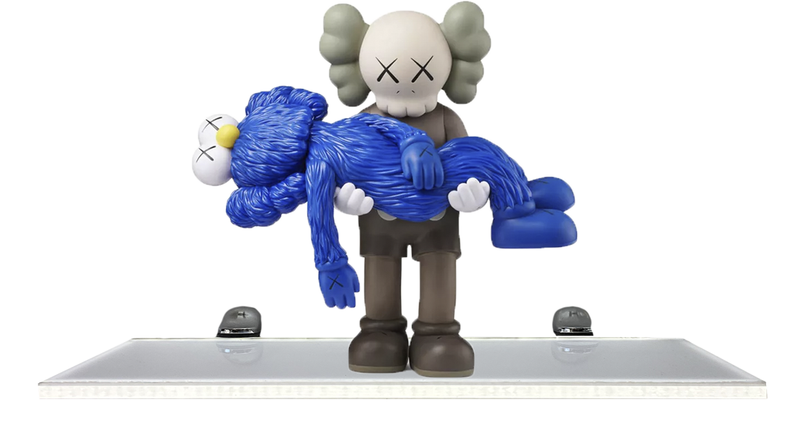 The KAWS Gone Blue features a Companion figure holding what appears to be a lifeless BFF figure in its arms.