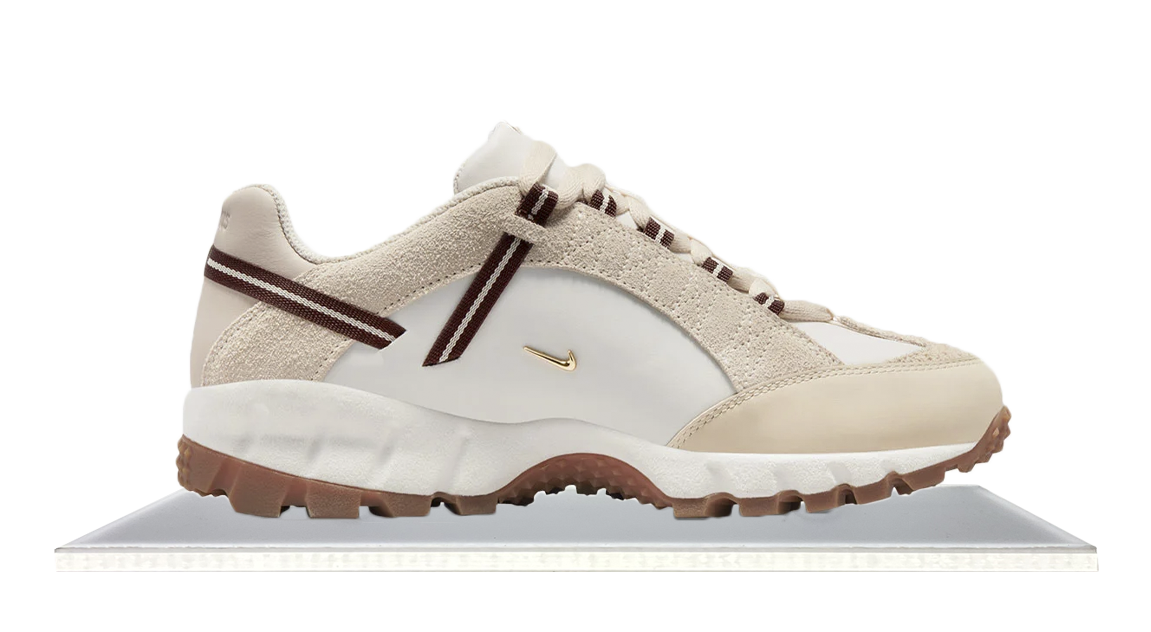 The Air Humara LX x Jacquemus Light Bone Gold is a shoe designed by french designer Simon Porte Jacquemus. He shared that the sneaker was designed with inspiration from vintage ACG pieces and Nike campaigns, and then of cause his own touch. So this shoe is a perfect fusion between Jacquemus himself, and Nike performance.