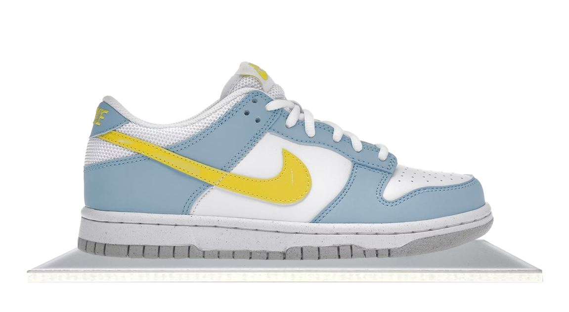 The Nike Dunk Low Next Nature “Homer Simpson” brings playful energy with a bold mix of bright blue, white, and yellow — a color combo that nods to the iconic cartoon character. Crafted with recycled materials under Nike’s Next Nature line, it keeps things fresh, fun, and wearable. A standout Dunk with a subtle pop-culture twist.