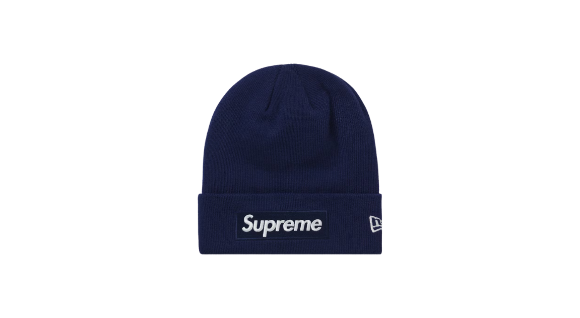 Explore the Supreme New Era Box Logo Beanie Washed Navy (FW21) at Takeoff Copenhagen. A timeless winter essential featuring the iconic box logo on a washed navy knit, delivering classic Supreme attitude with a worn-in look that pairs perfectly with any streetwear fit.