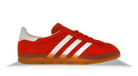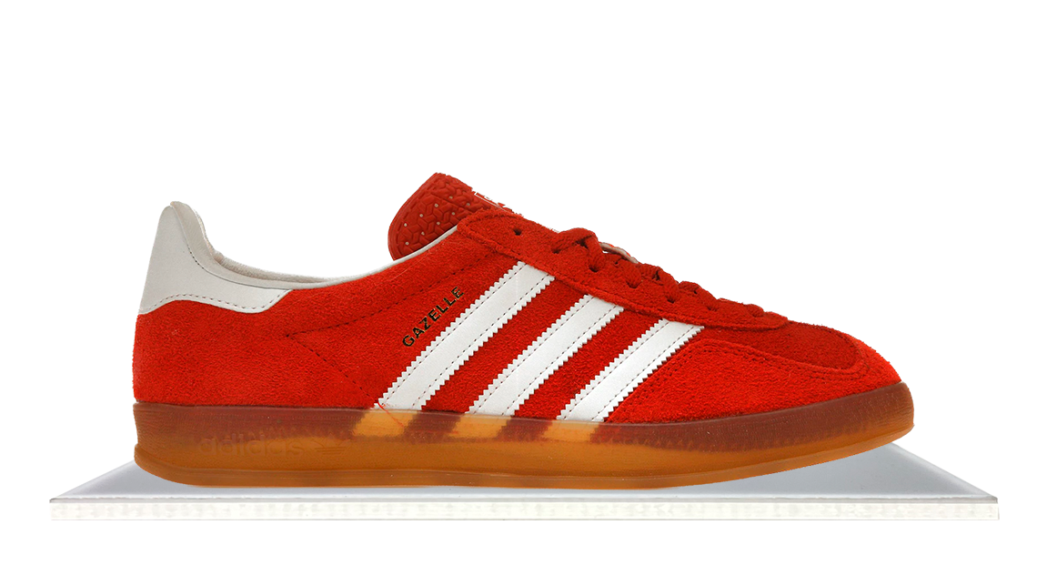 The Adidas Gazelle is a timeless classic that has once again become relevant. Since its initial launch in 1966, they have remained a favorite among fashion enthusiasts. The Orange Peel White colorway features an all dark orange/ red suede upper with three white Adidas stripes, heel and a gum outsole.