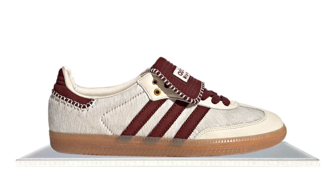 Experience the luxurious Wales Bonner x adidas Samba "Cream White". This iconic silhouette boasts premium materials, including pony hair detailing that adds depth to the design. With sleek leather accents and Wales Bonner's signature stitchwork, it's a perfect blend of streetwear and sophistication.