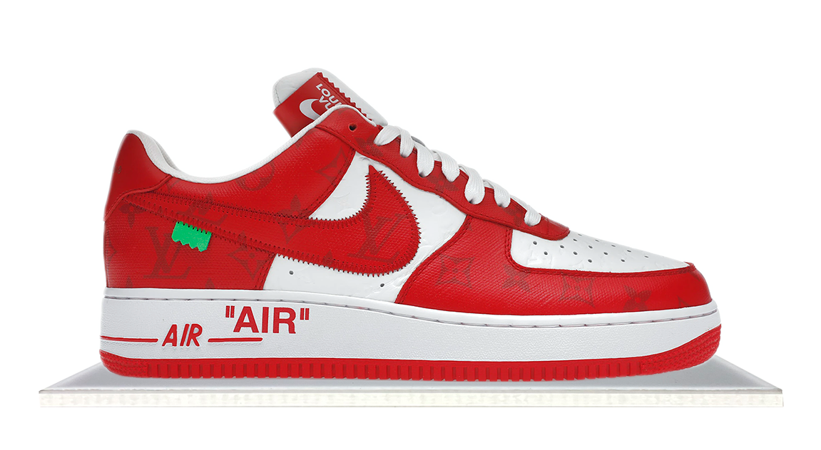 The Louis Vuitton x Nike Air Force 1 Low by Virgil Abloh in White Red, released on July 19, 2022, fuses the classic Air Force 1 design with Louis Vuitton’s luxury craftsmanship. This white and red colorway honors traditional sportswear through Abloh's innovative lens, blending Nike's athletic heritage with Louis Vuitton’s high-fashion touch. Each detail celebrates Abloh's legacy, capturing his ethos of pushing boundaries and merging streetwear with luxury in a piece that redefines sneaker culture.