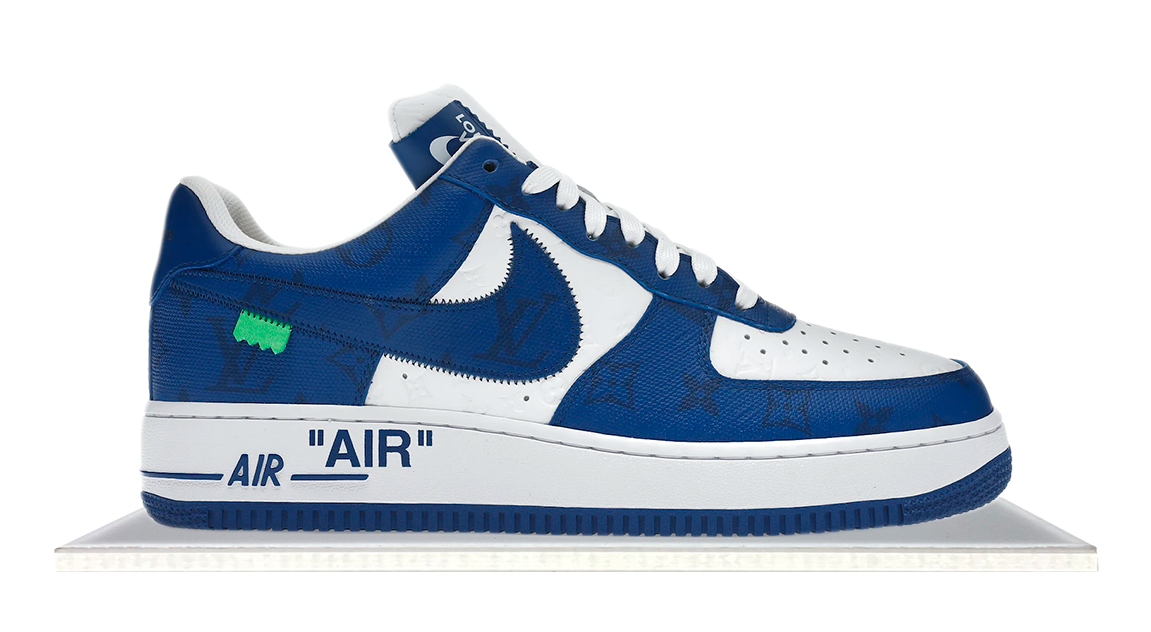 The Louis Vuitton x Nike Air Force 1 Low by Virgil Abloh in White Royal, released on July 19, 2022, celebrates the fusion of Nike’s iconic Air Force 1 with Louis Vuitton’s luxury craftsmanship. This white and royal blue colorway captures Abloh’s vision, blending sporty functionality with high-fashion detail. It’s a bold tribute to Abloh's legacy, symbolizing the seamless merge of streetwear and luxury in a standout design.
