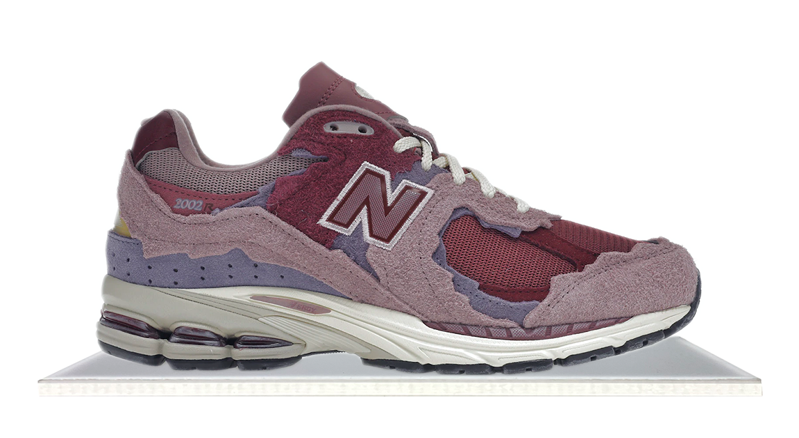 This New Balance 2002R originates from the protection pack and features a constructed design in shades of pink.