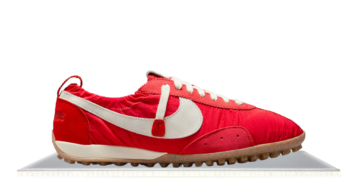 The Nike Moon Shoe SP Jacquemus University Red reimagines Bill Bowerman’s legendary 1972 Moon Shoe through Jacquemus’ minimalist Parisian lens. Keeping the iconic low profile and waffle sole, it’s updated with sleek leather details and subtle Jacquemus branding on the tongue, heel, and sockliner.