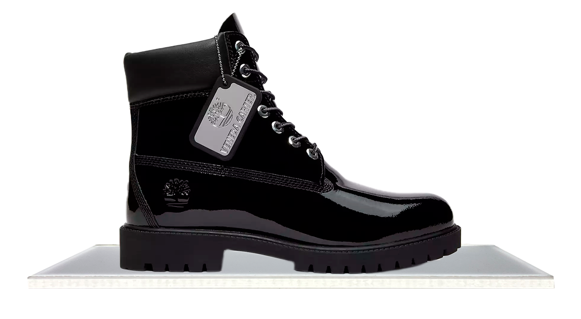 Timberland partners with Veneda Carter to infuse a '90s vibe into the classic 6” boot. With a glossy patent leather finish and bold styling, it's a winter essential crafted from premium materials. This pair features an all black colorway.